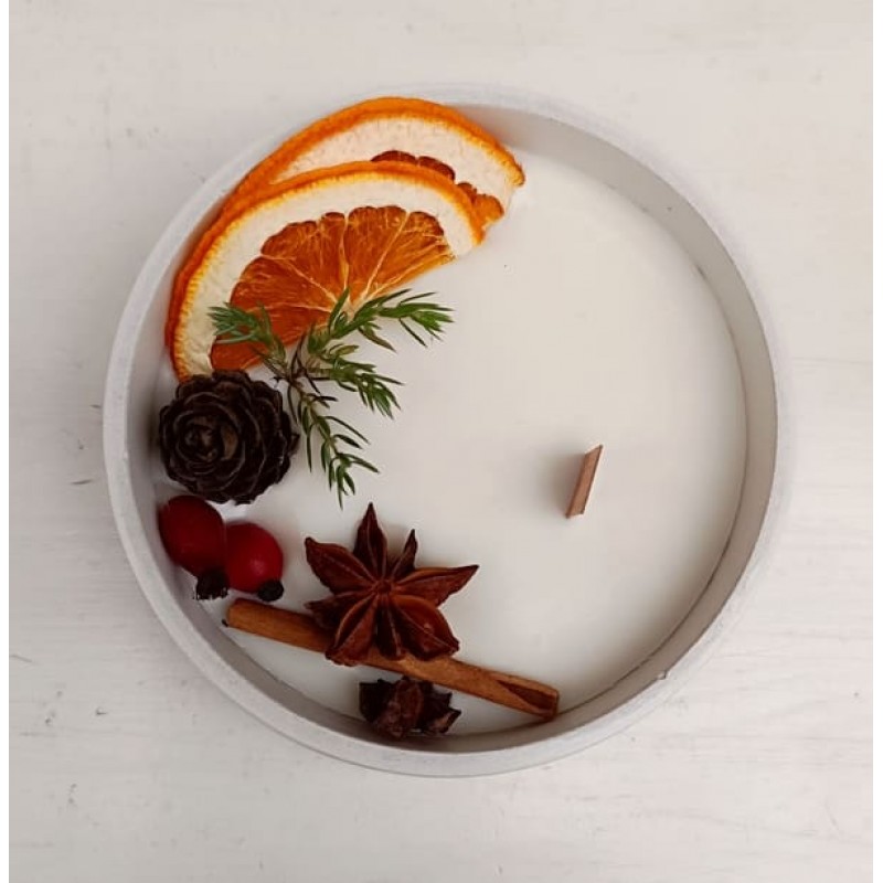 - Ароматна Коледна свещ в ниска гипсова кашпа с диаметър 12.5 см, височина 4.5 см
