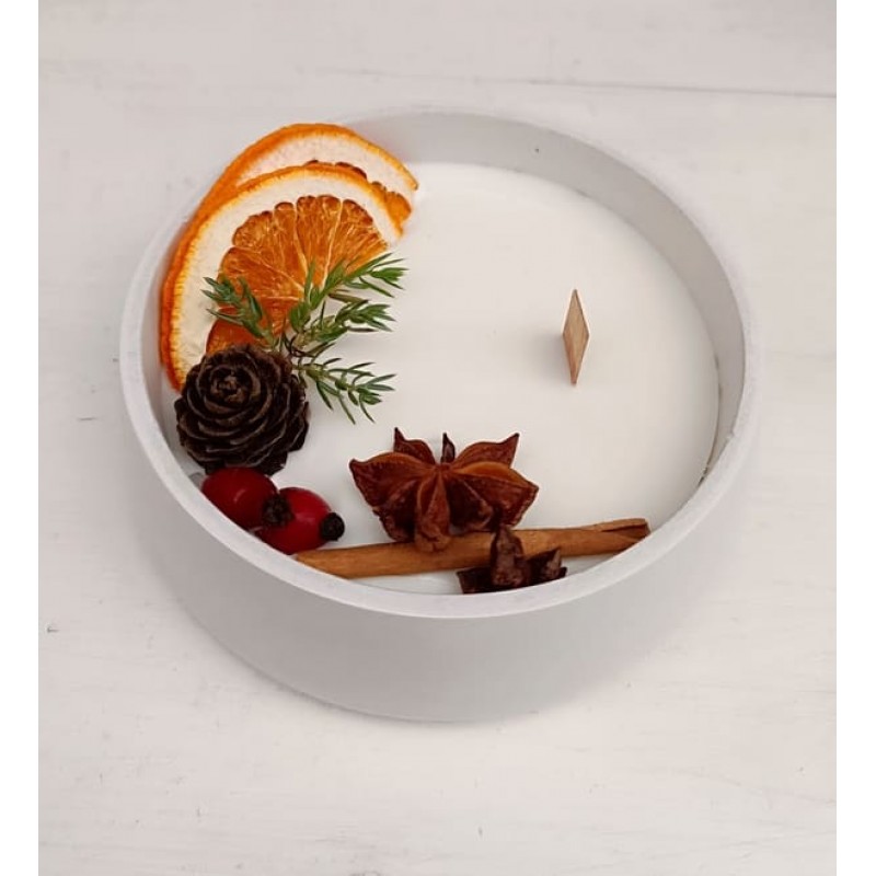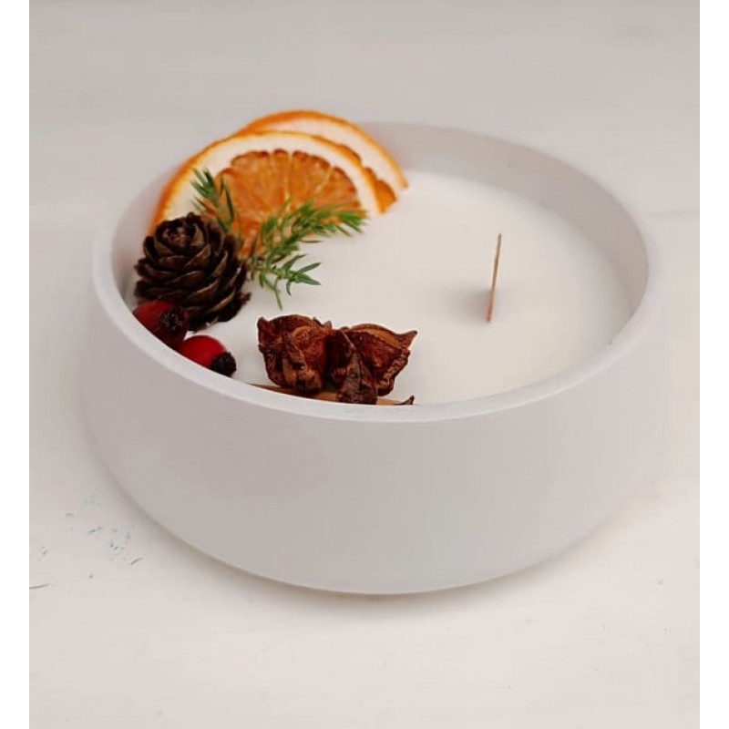 Ароматна коледна свещ в гипсова керамична кашпа