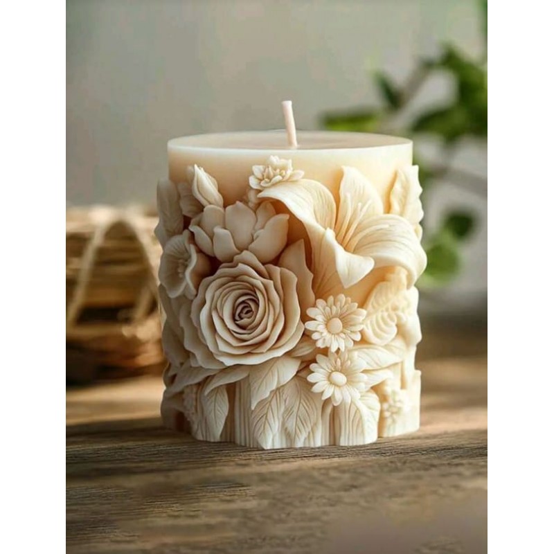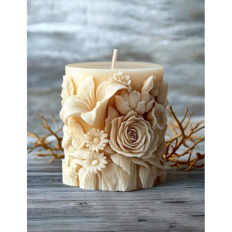 - Красива свещ с богати цветни орнаменти в топъл и мек цвят на ванилия за вечери, стоплени от уют и любов