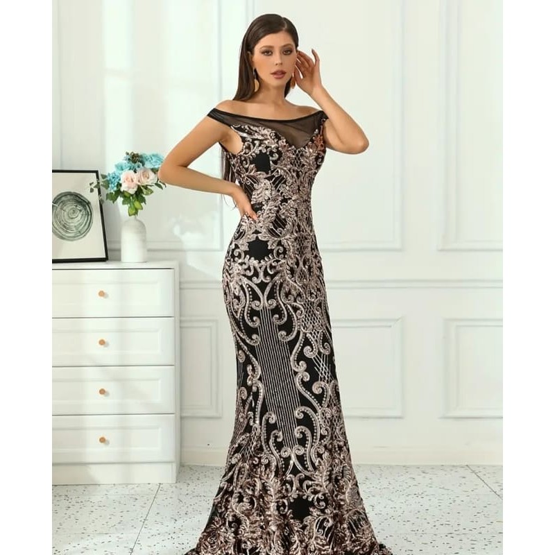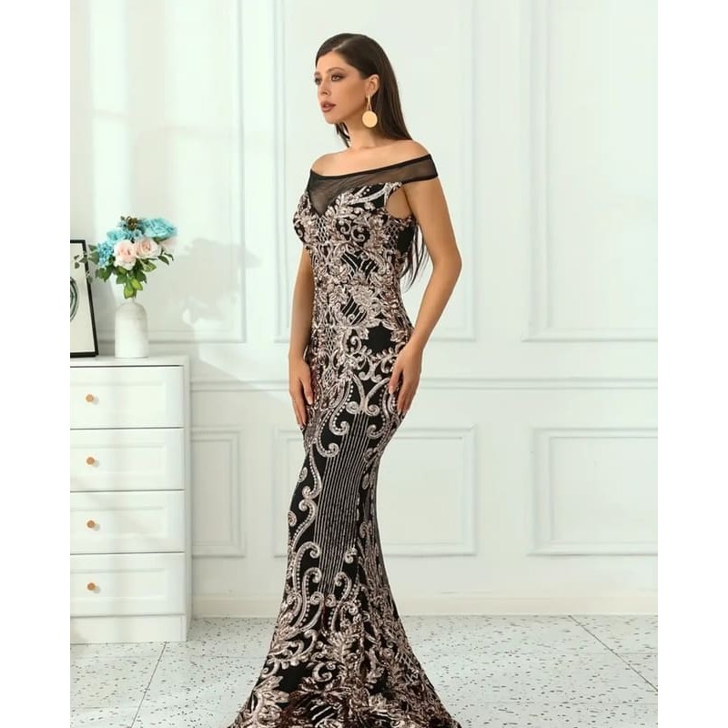 Етикети: бална рокля, дълга рокля, рокля с паети, официална рокля