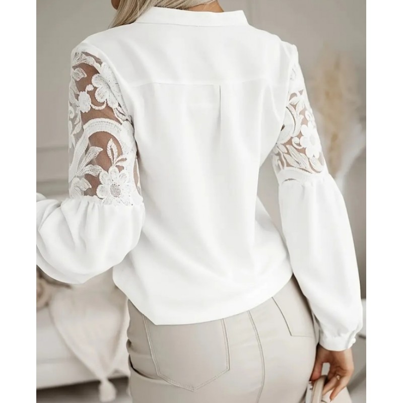 Бюджетна дантелена блуза макси размери - налична също с черна основа Официална блузаРазмер 3ХL, 4XL,..