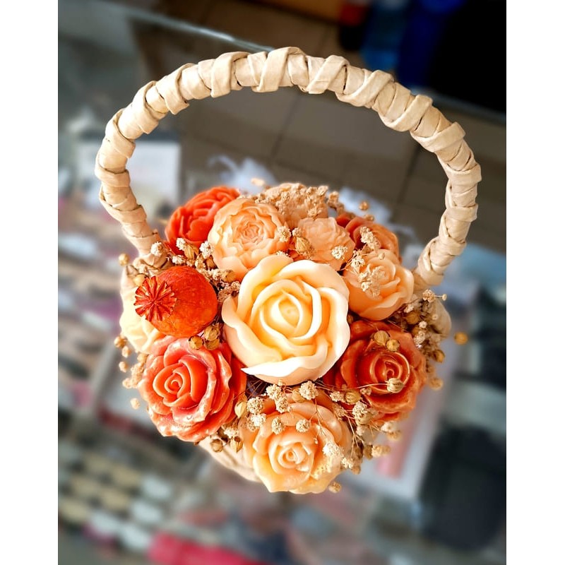 Букет от восъчни цветя в плетена чанта Размери дължина 18 см, височина 19 сморигинален букет от..