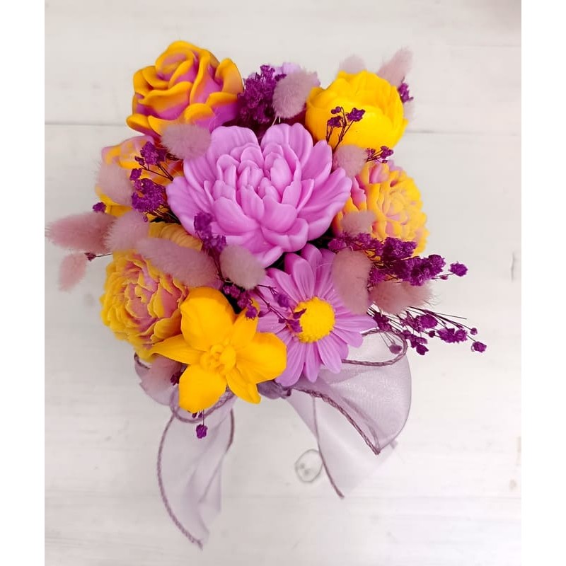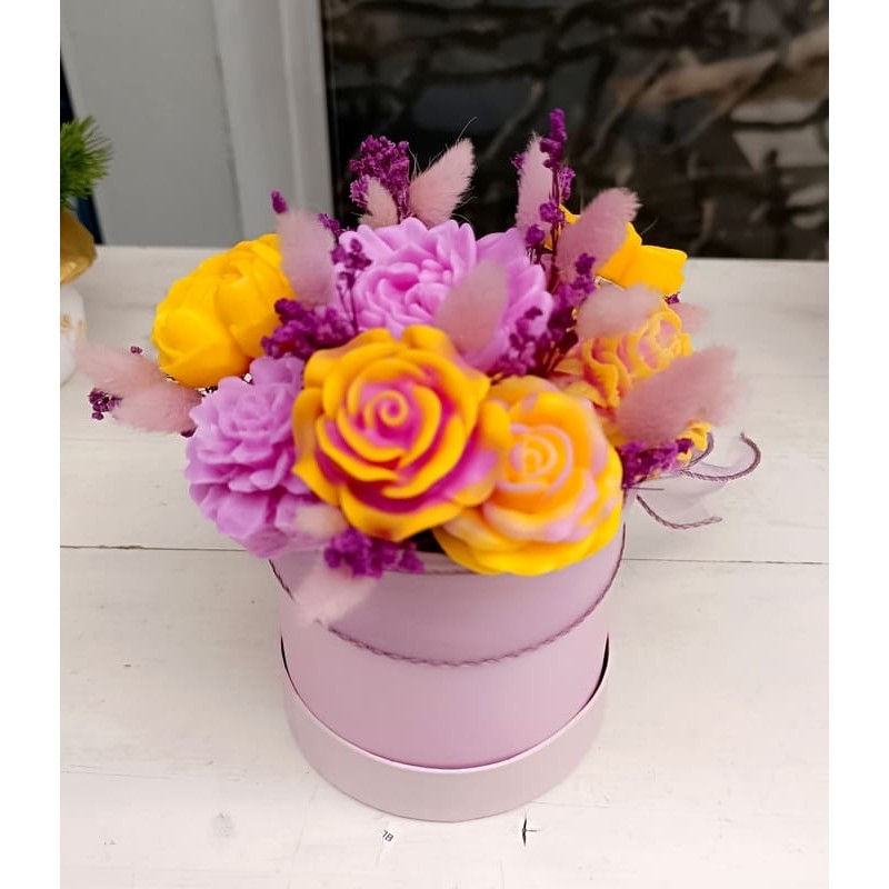 Букет от свещи в кутия за подарък за скъп човекАранжирани соеви цветя в кутия, изработени с много лю..