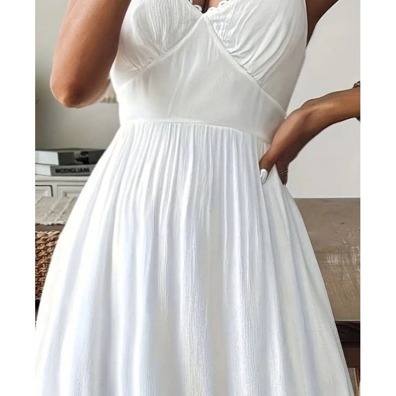 Бяла лятна рокля с дантела без ръкавиРазмер М за гръдна ок. 90-96 см, талия 70-74 см, дължина 136 см..