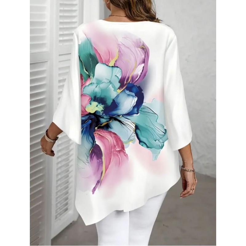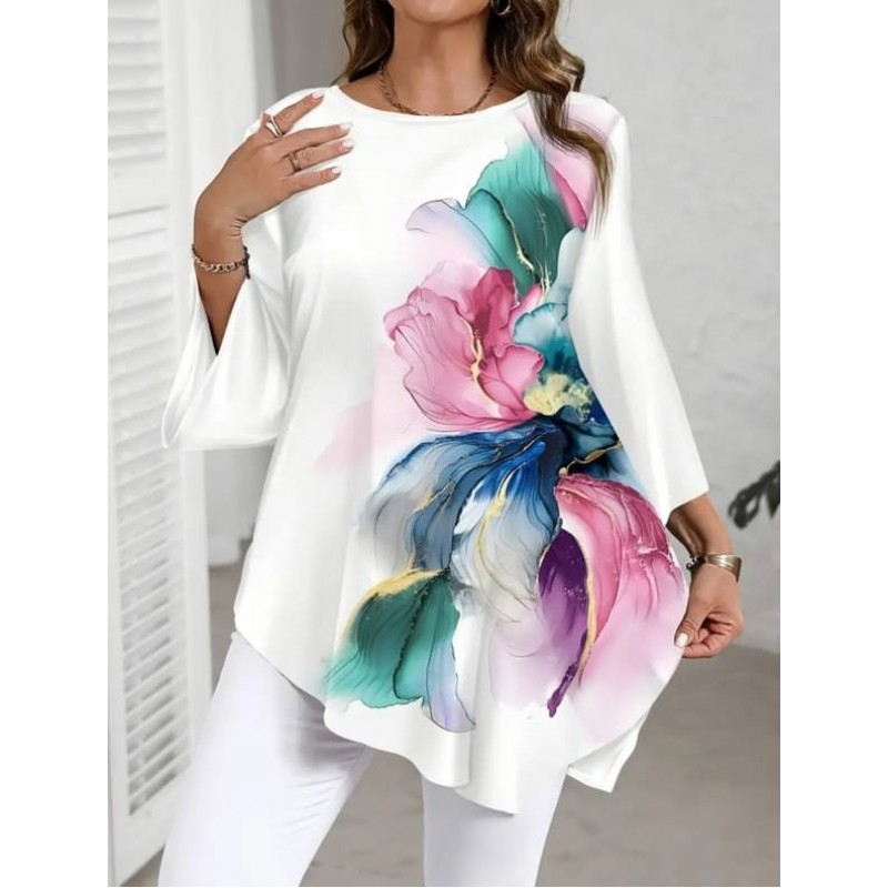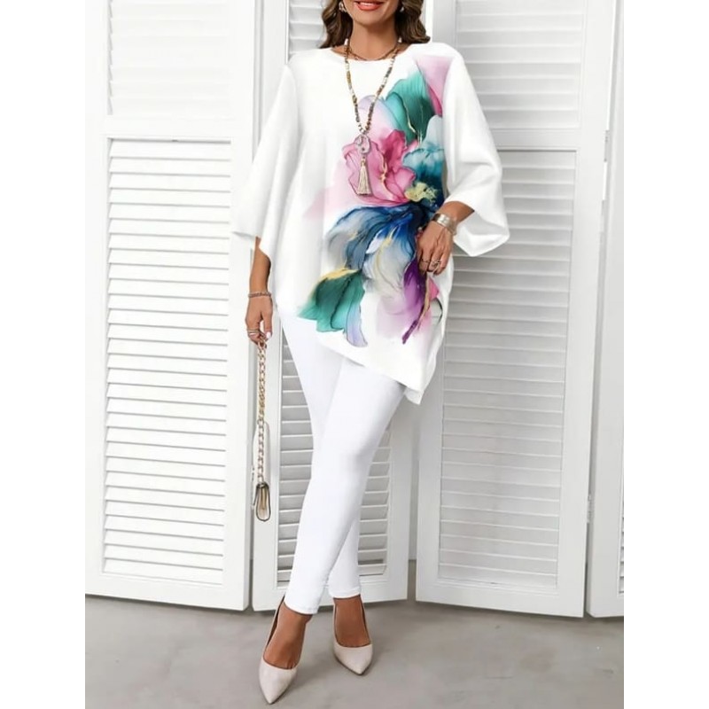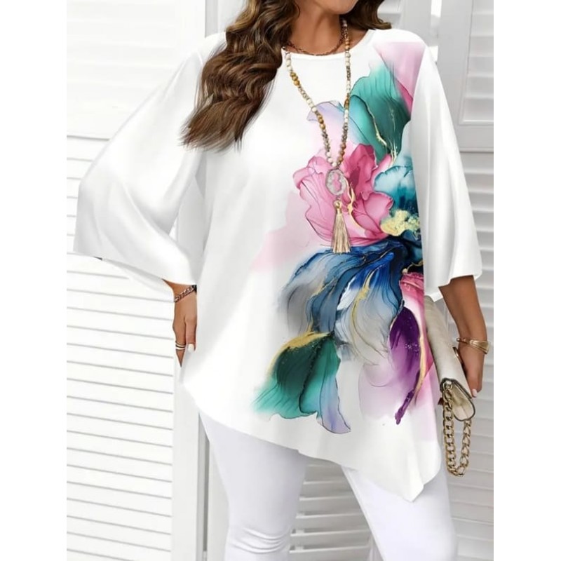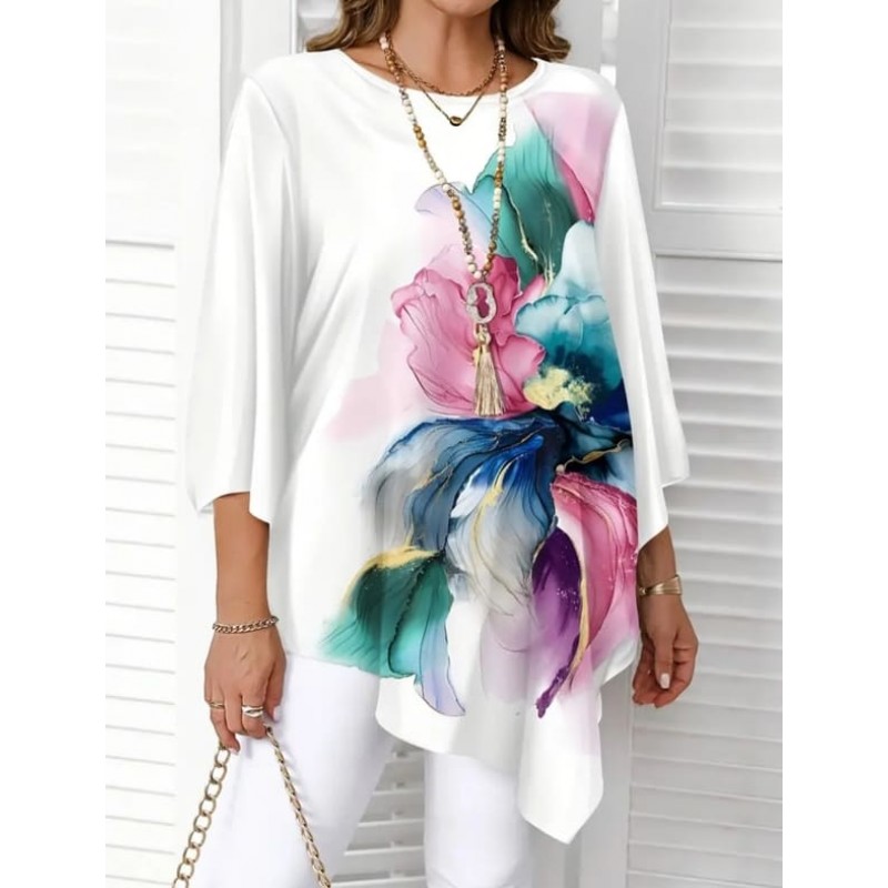 Макси туника пролетна асиметричнаРазмер 2XL за гръдна ок. 128-130 см, талия 120 см, дължина 74-88 см..