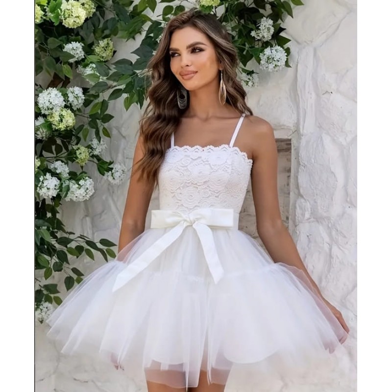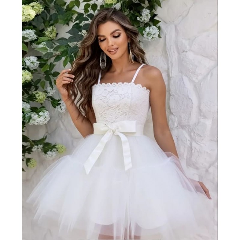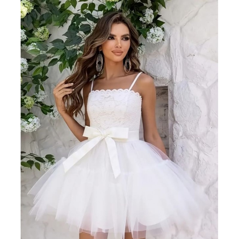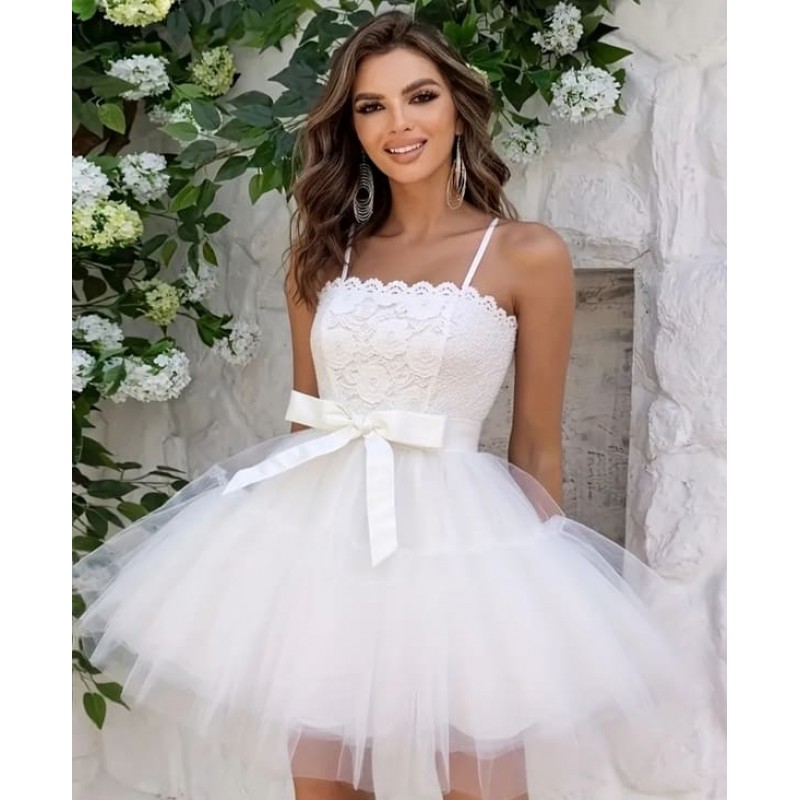 Етикети: бяла рокля, официална рокля, къса рокля, разкроена рокля, дамска бяла рокля