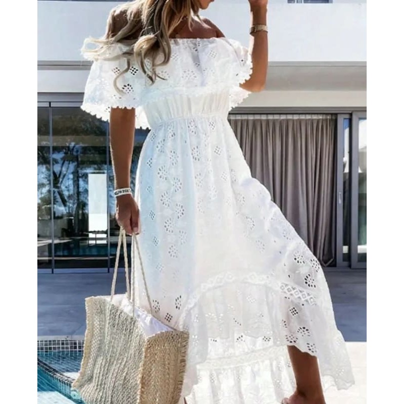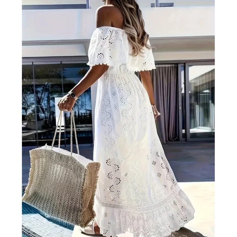 Етикети: бяла рокля, бохо рокля, рокля за лятото, лятна рокля, дълга рокля