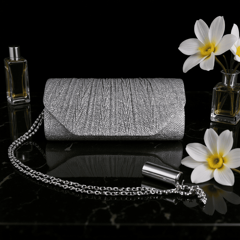 Етикети: дамска чанта, сребриста чанта, чанта с верига, чанта за абитуриентски бал
