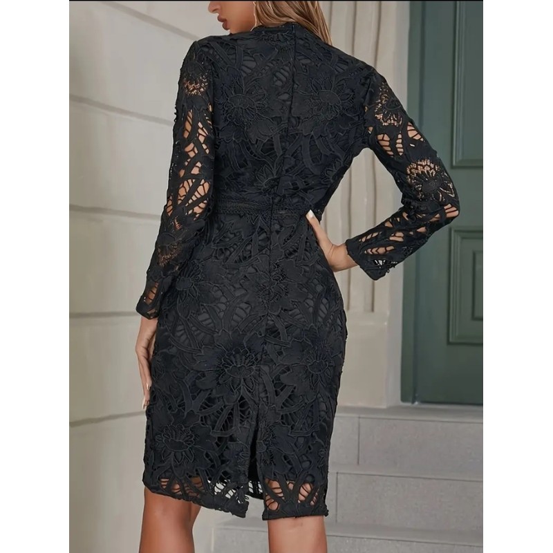Етикети: дамска рокля, черна рокля, официална рокля, рокля от дантела, къса рокля