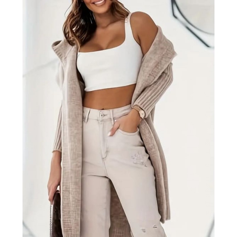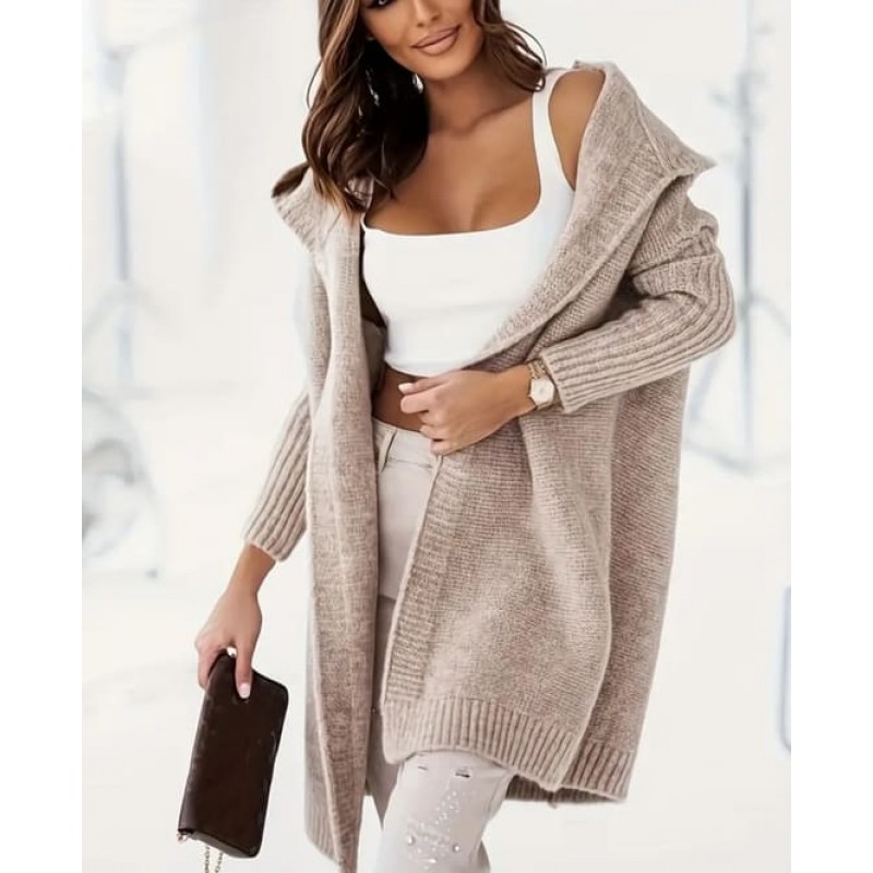 Етикети: дамска жилетка, бежова жилетка, жилетка с качулка, есенна жилетка, дълга жилетка