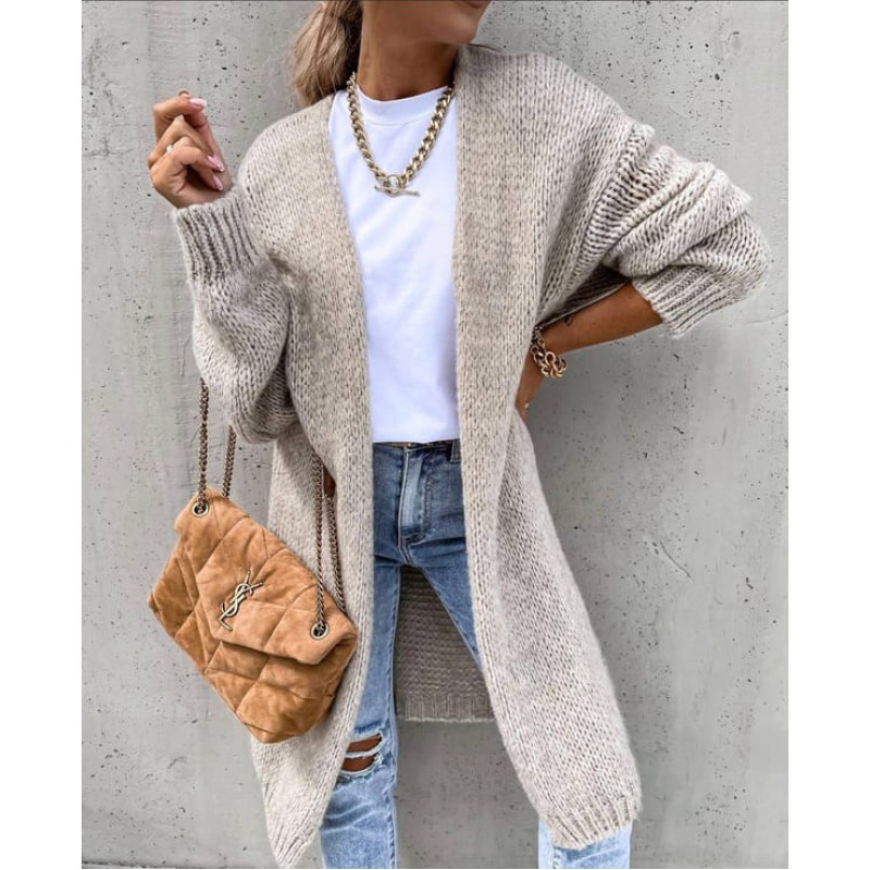 - дамска дълга жилетка плетена с едра плетка без джобове и копчета