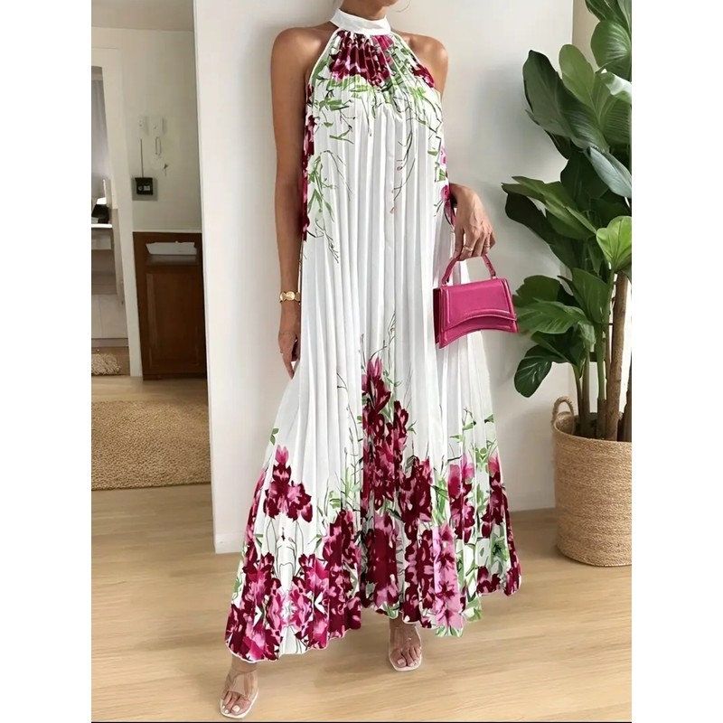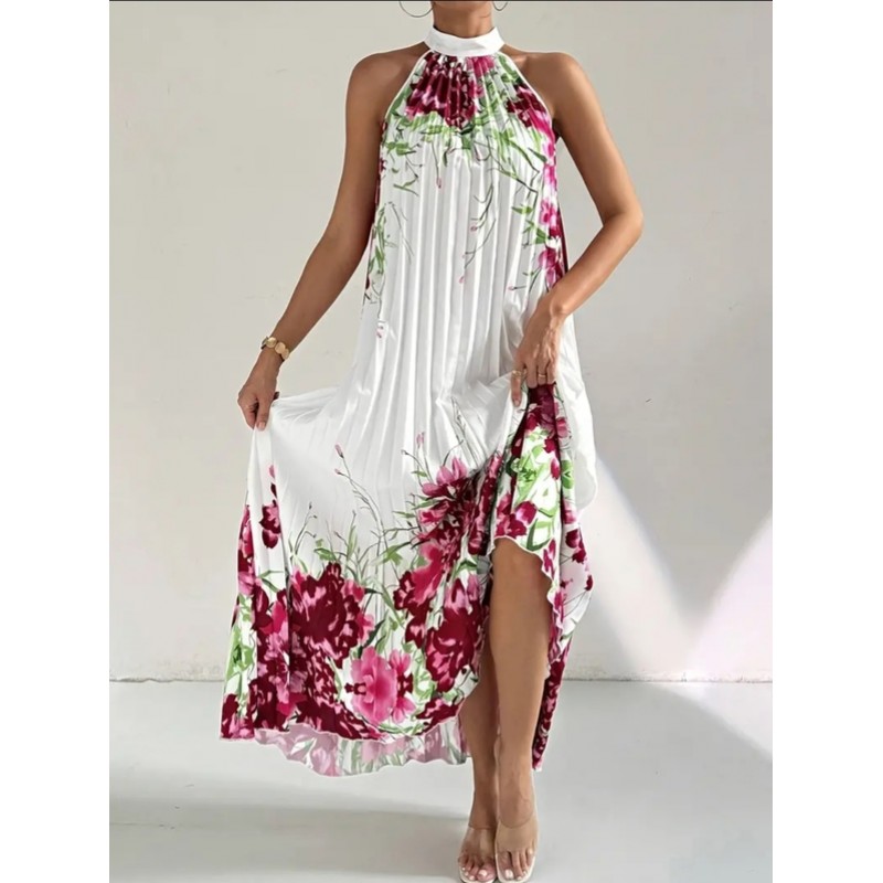 Модерна розова рокля с цветя и волани - Налична е също в бяло Бяла рокляРазмер М за гръдна до ок. 10..
