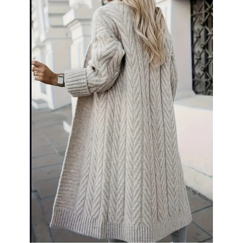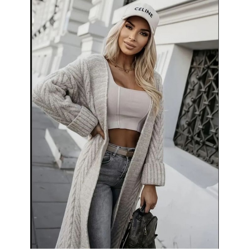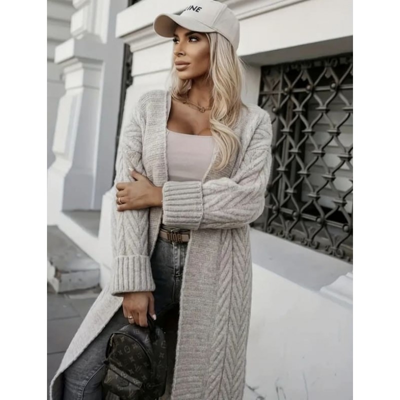 Етикети: дамска жилетка, светлокафява жилетка, дълга жилетка, плетена жилетка