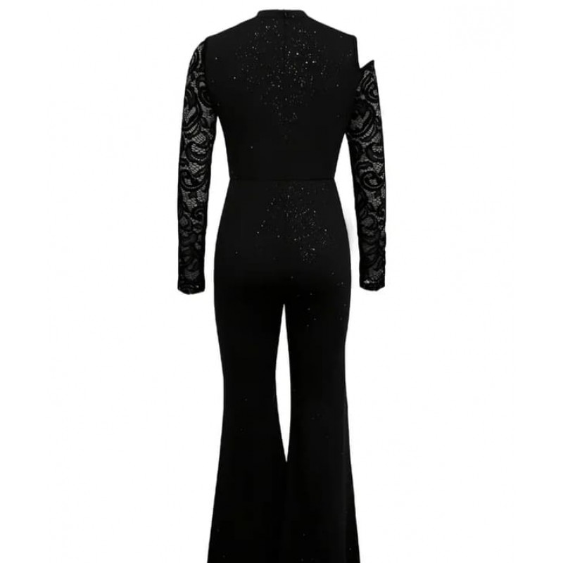 Официален гащеризон с дантелени ръкавиРазмер S и Mчерен официален гащеризон с остро деколте и цип на..