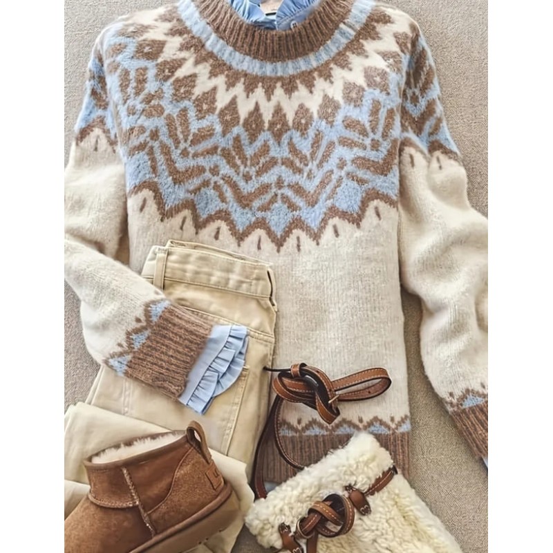 - свободен пуловер с реглан ръкав и скандинавска шарка подходящ за ски или уикенд в планината