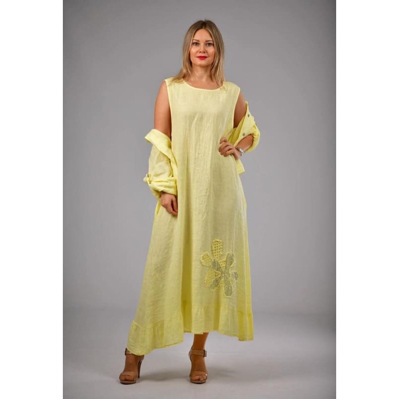 Ленен комплект рокля и яке с дълъг ръкавРазмер L/XL - рокля гръдна 110-112 см, ханш до 128-130 см, д..