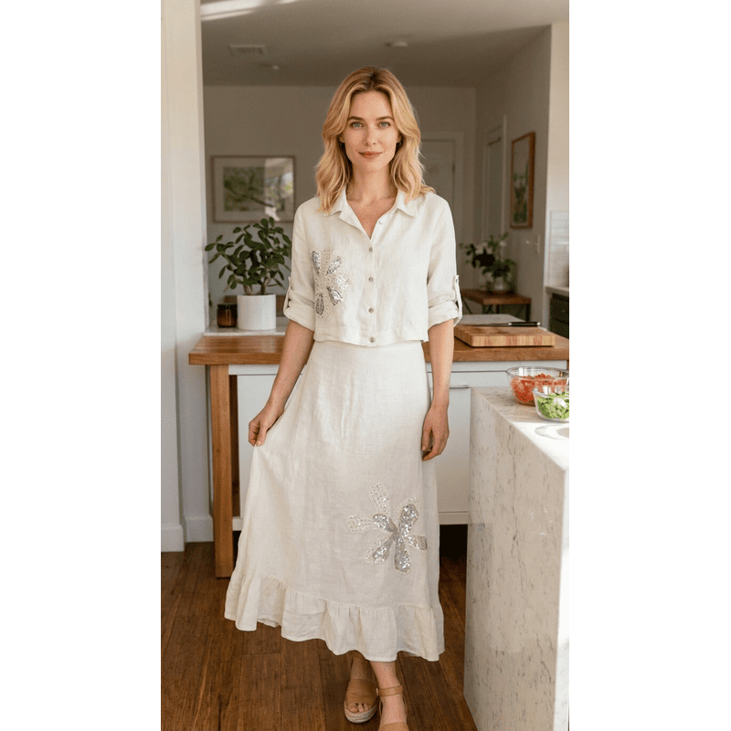 Етикети: дамски комплект, ленен комплект, рокля и яке, ленена рокля, дамски сет