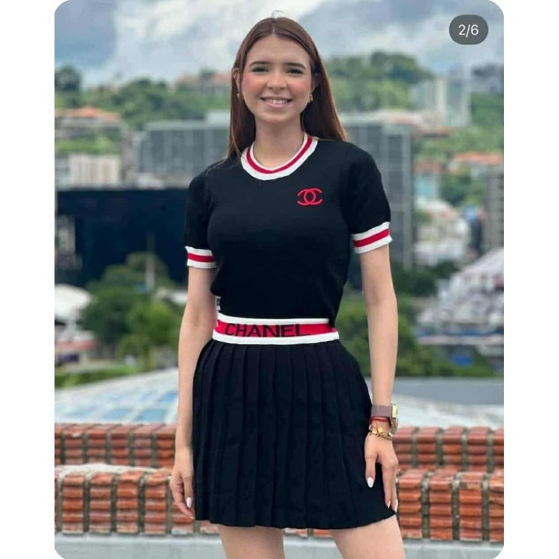 Етикети: дамски сет, комплект от две части, плетен комплект, комплект с пола