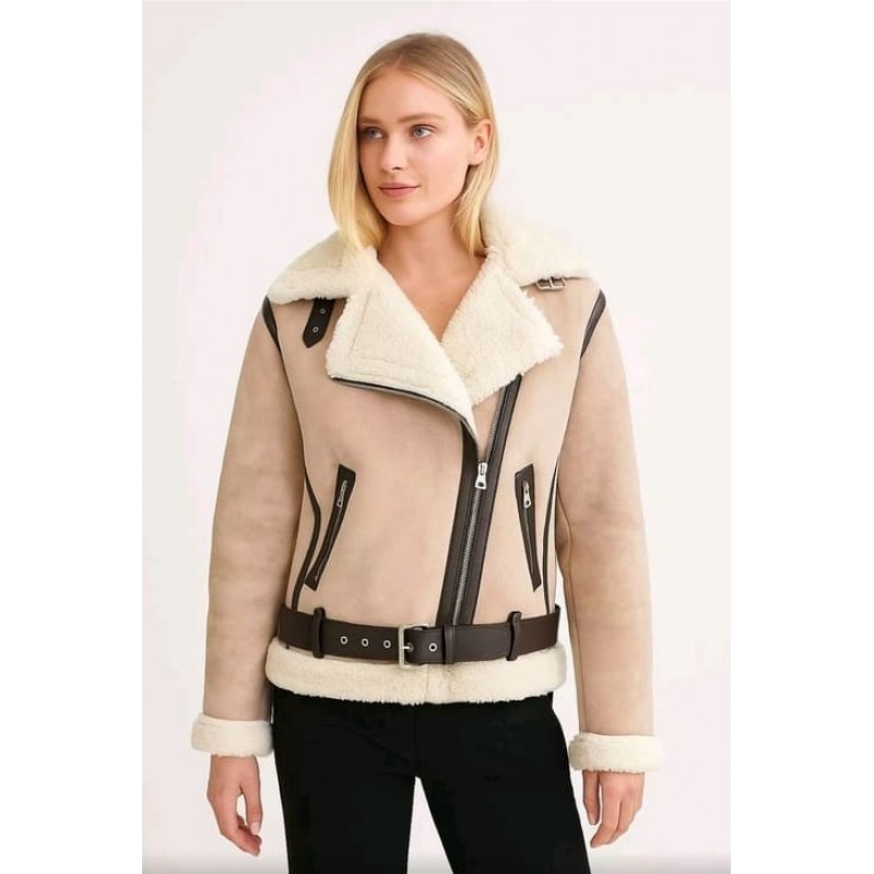 Зимно палто с колан от еко-кожаРазмер универсален за гръдна ок.96-105 см, талия 90-94 см, ханш..