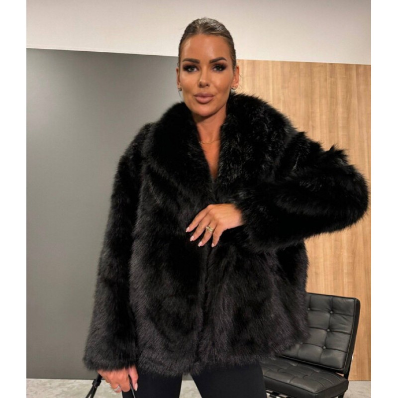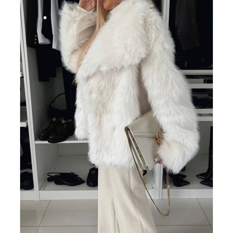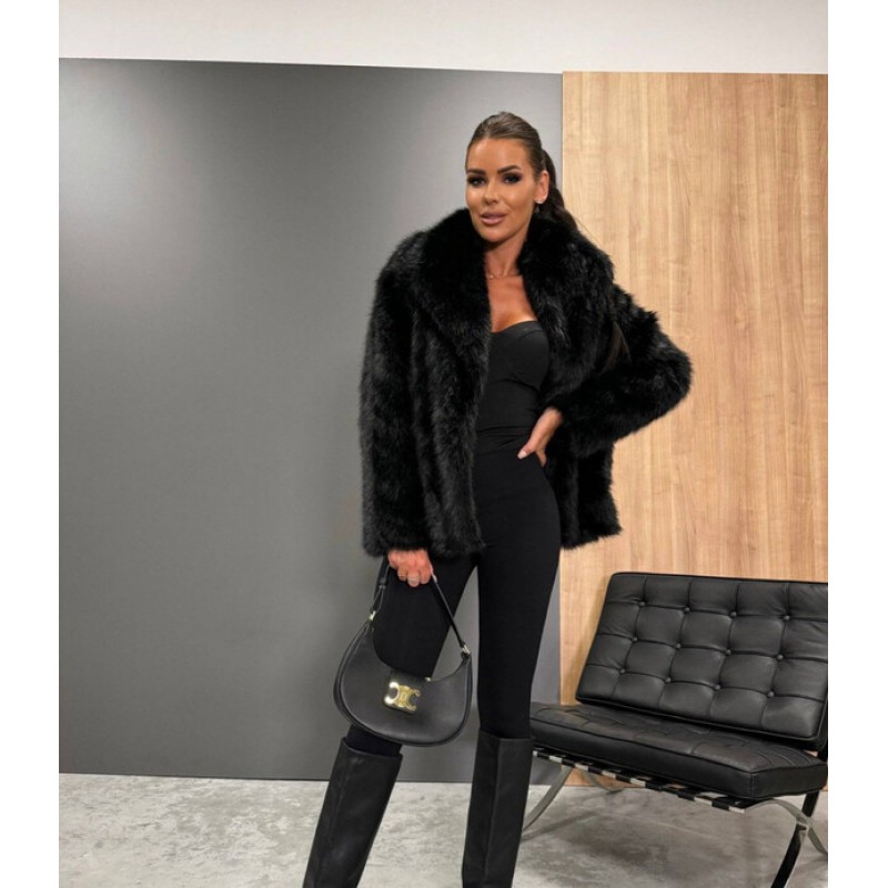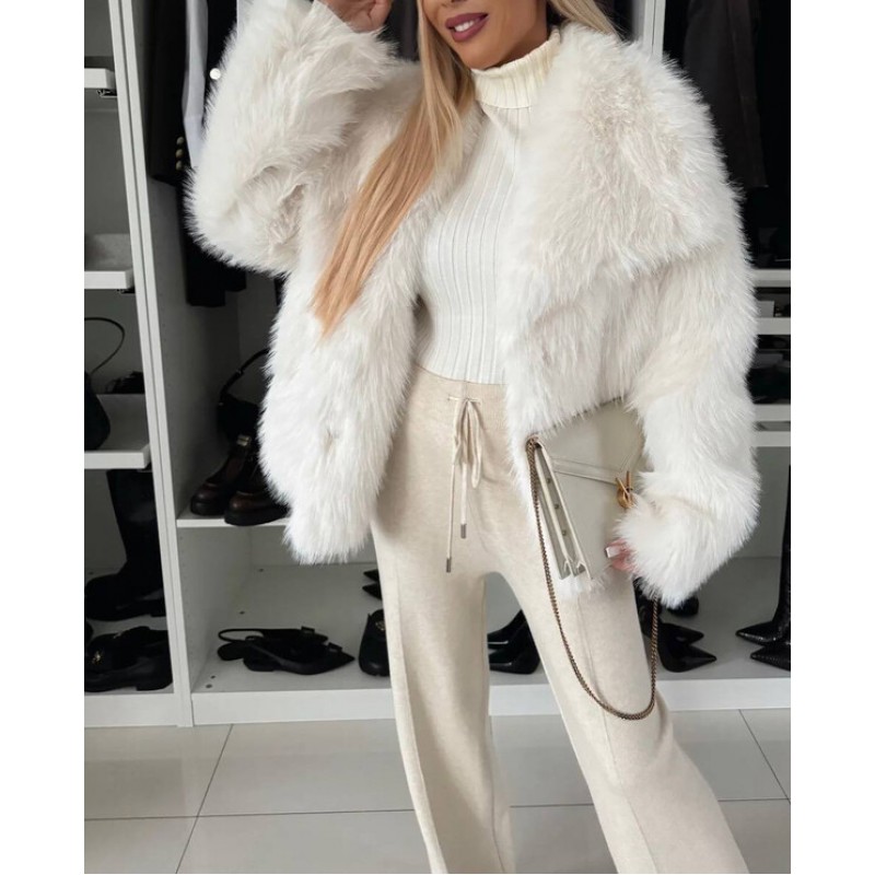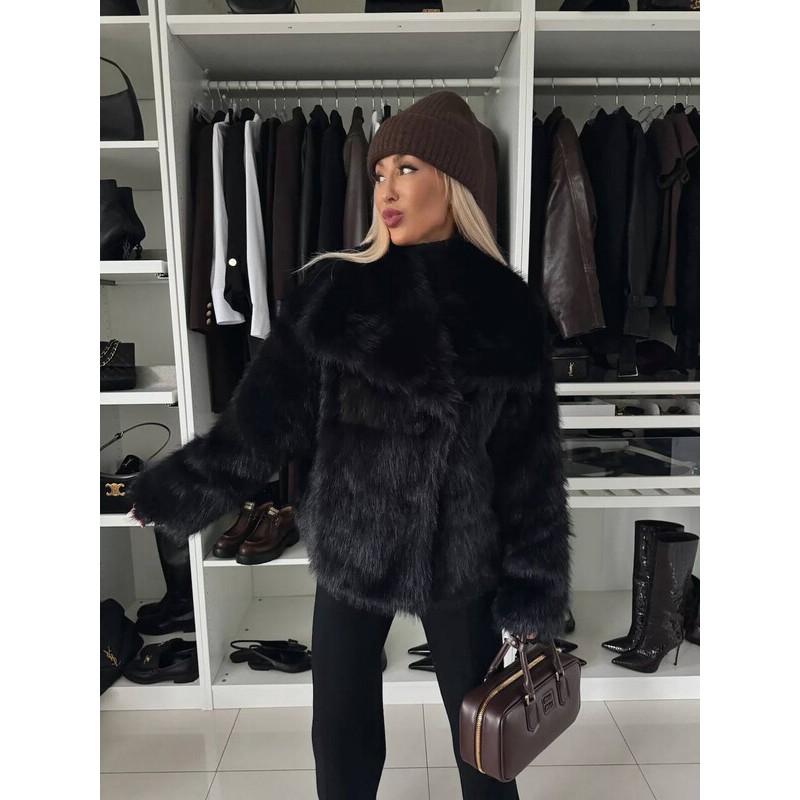 - луксозно късо еко-палто с косъм и двуредно закопчаване с метални скрити копчета