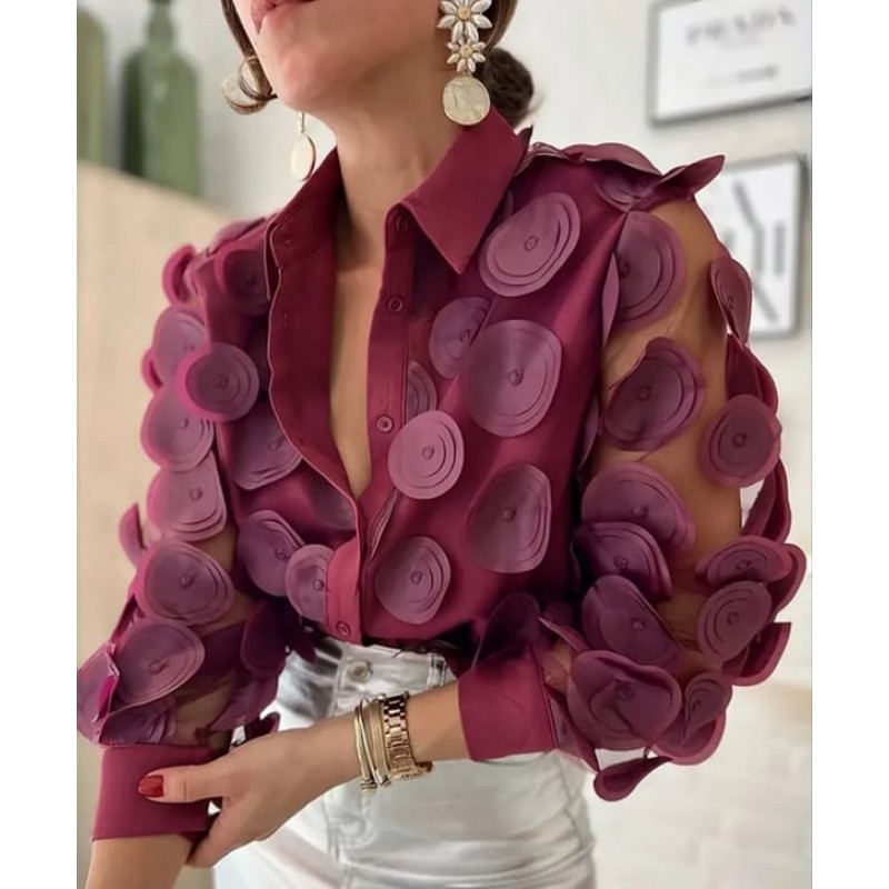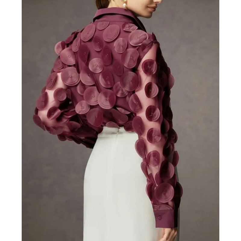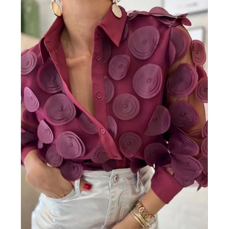 - дамска елегантна риза с пришити 3D кръгове