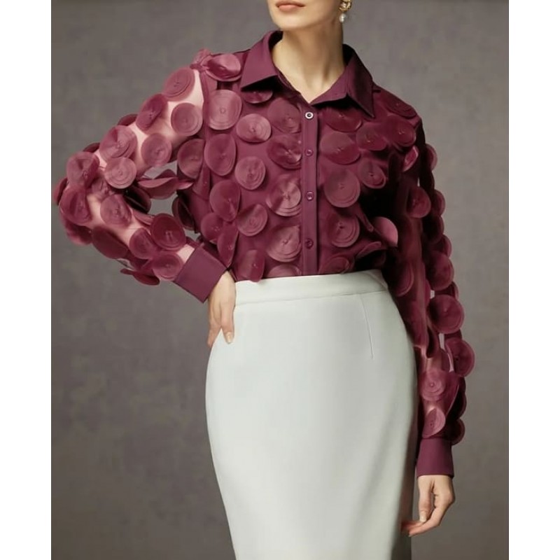 Елегантна риза цвят бордо с 3D кръгове