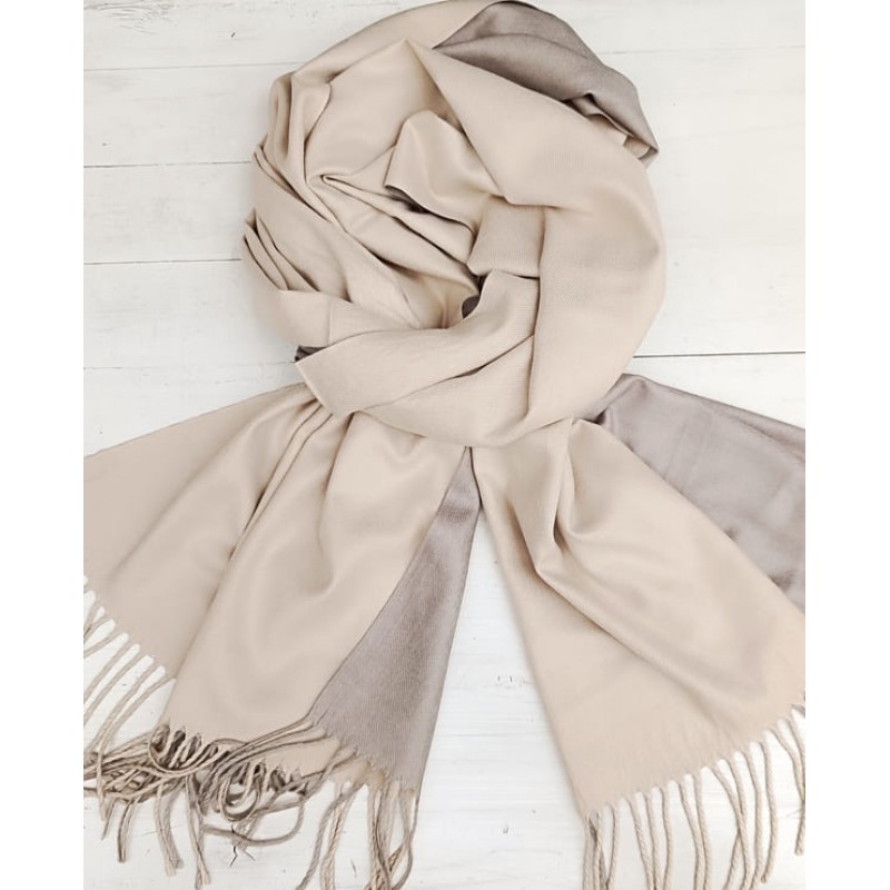 Бежов кашмирен шал с ресниРазмер 190/70 смголям размер правоъгълен бежов шал от кашмирмек, топъл и ф..