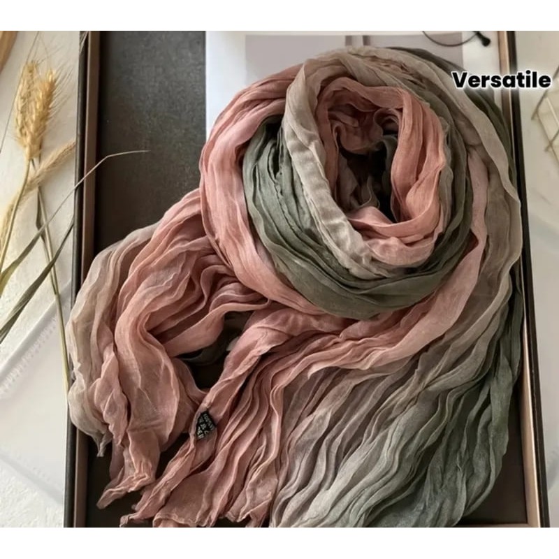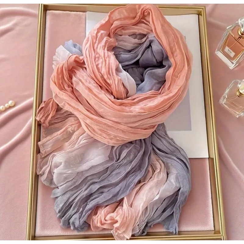 - дамски пролетно-летен шал в преливащи нюанси с мачкан ефект