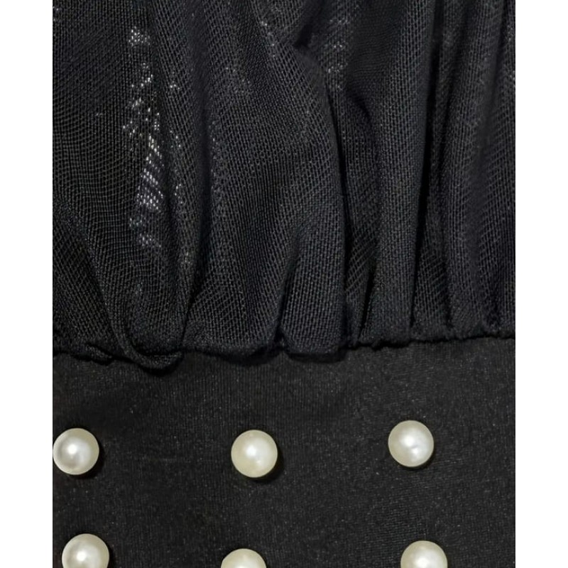 Официален гащеризон с ръкав от мрежа и бели перли