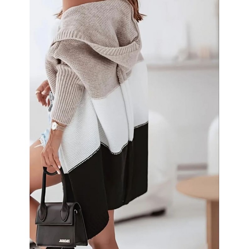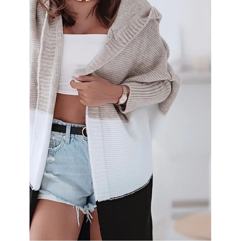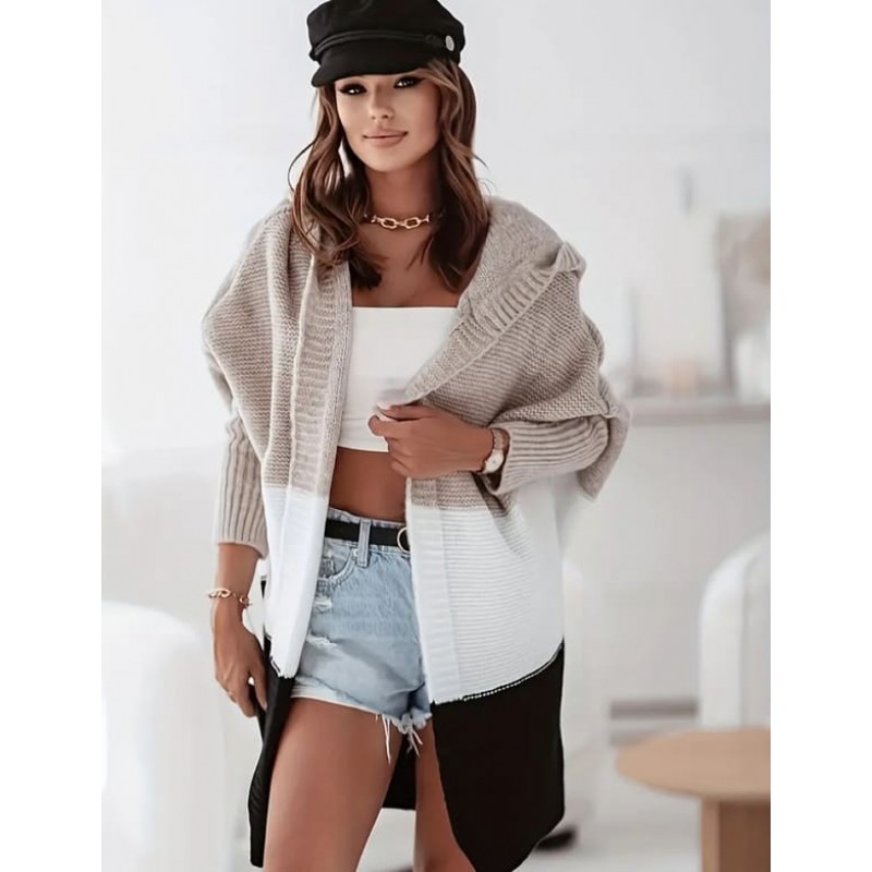 Плетена жилетка три цвята с качулка - Налична е с розово Дамска жилеткаДамска жилетка плетена в три ..