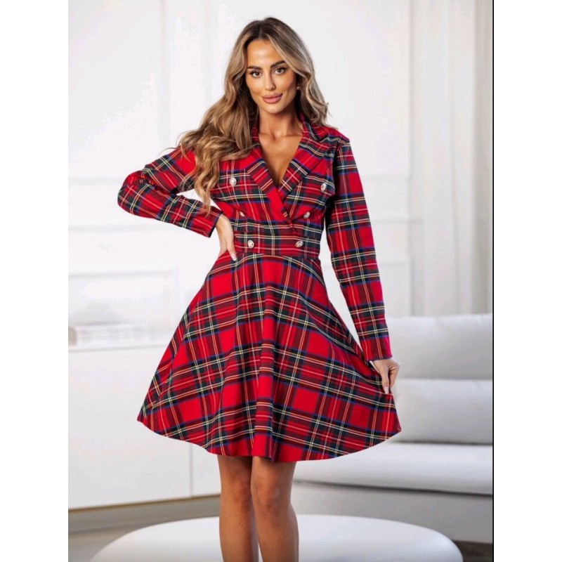 - дамска карирана Коледна рокля от плътна и еластична материя