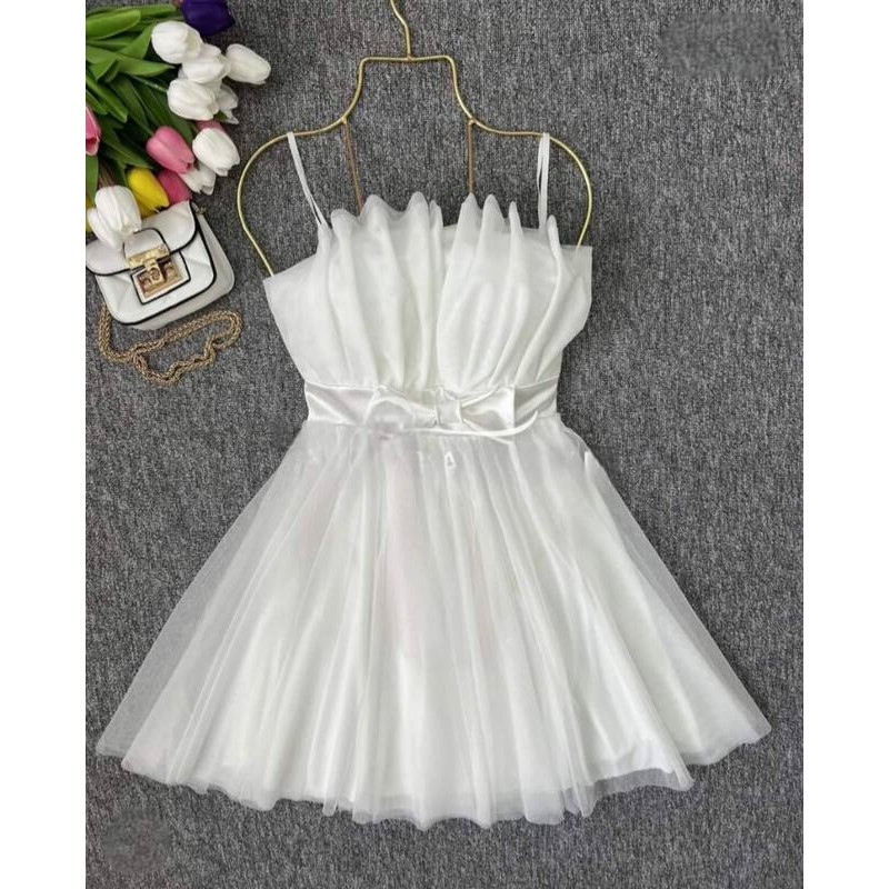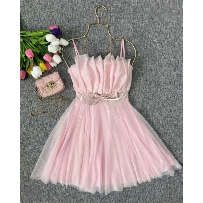 - роклята е с подплата, сатенена панделка на талията отпред и панделка от тюл - на гърба