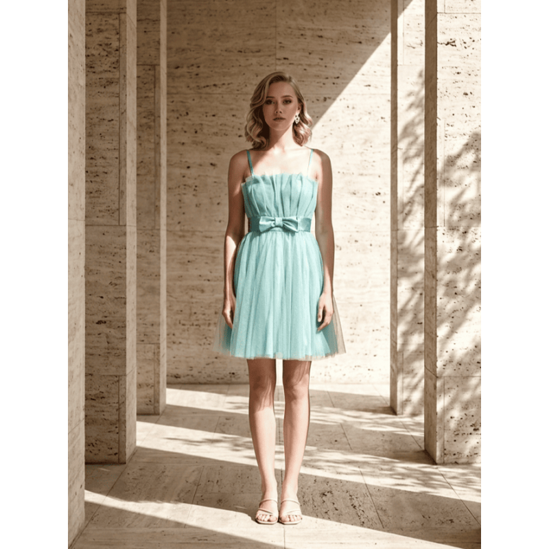 - красива официална тюлена рокля с твърда чашка на бюста и регулиращи презрамки