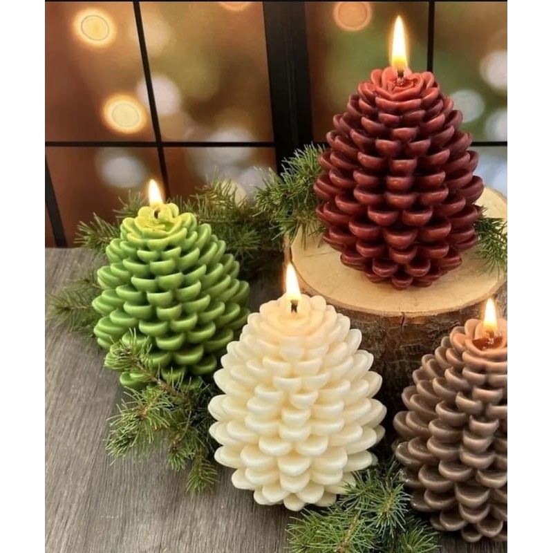 - ароматна Коледна свещ с формата на шишарка от соев восък