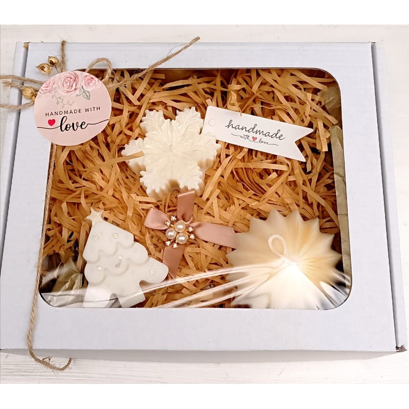 Подаръчна кутия със свещи за КоледаКрасива подаръчна кутия с три соеви свещи в няколко варианта - са..