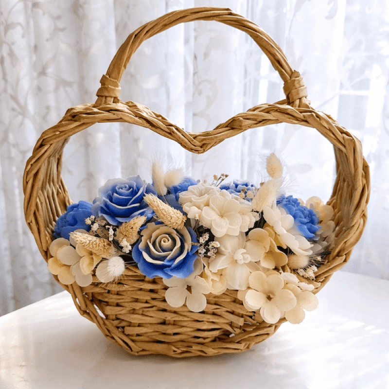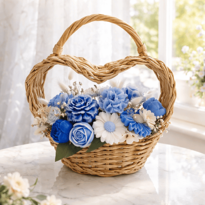 Кошница сърце със соеви цветя в синьо