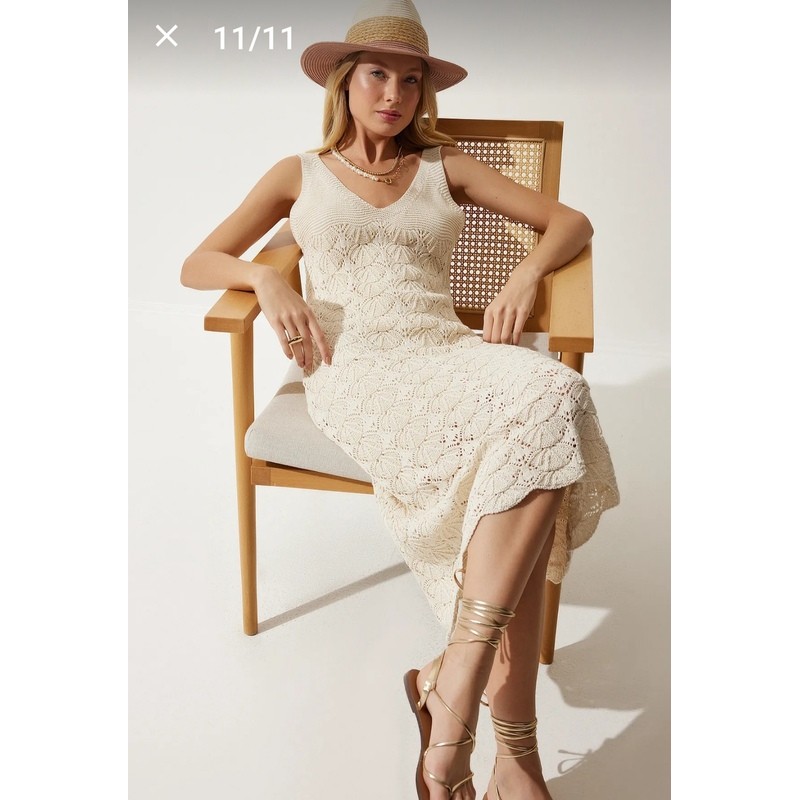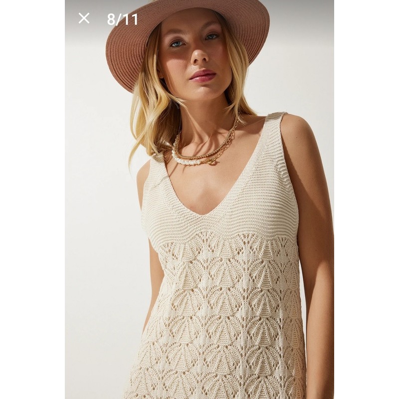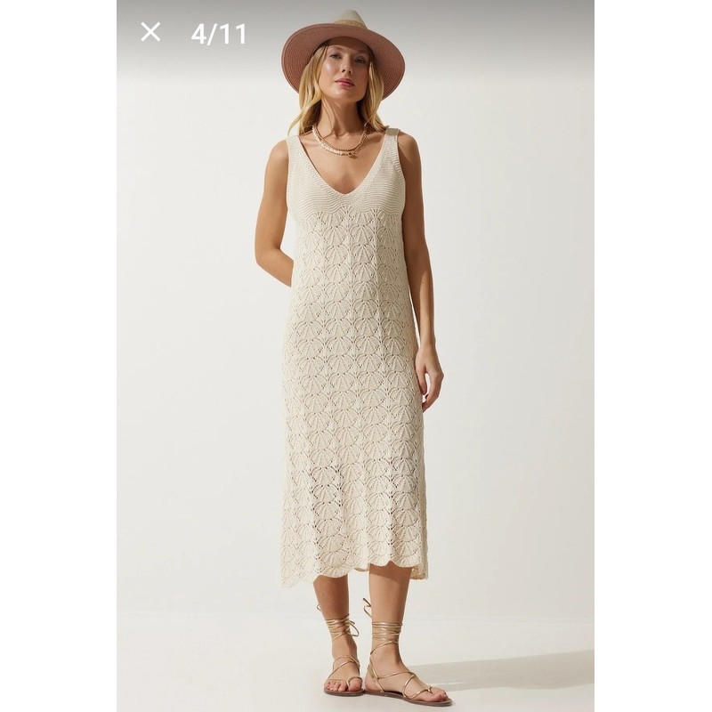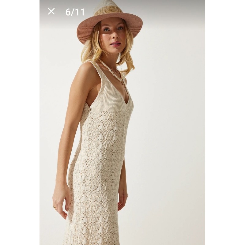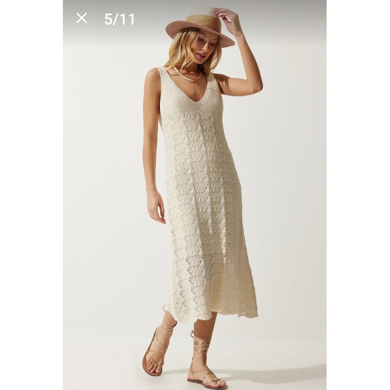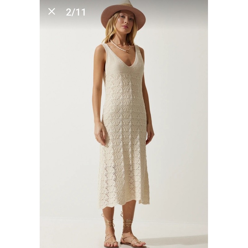 Дантелена рокля бохо стил цвят екрю и бялаРазмер S, М, L, XL , 2XLдамска дантелена рокля в цвят екрю..