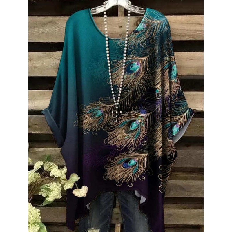 Памучна блуза макси с щампа цветяРазмер 2XL за гръдна до ок. 120-122 см, дължина 71 смдамска свободн..