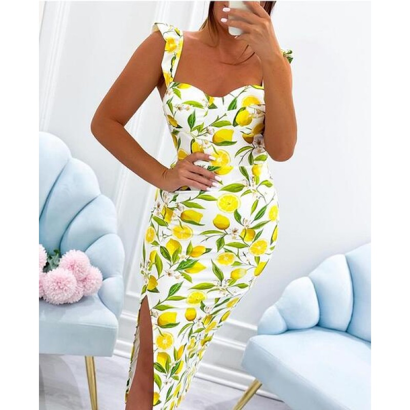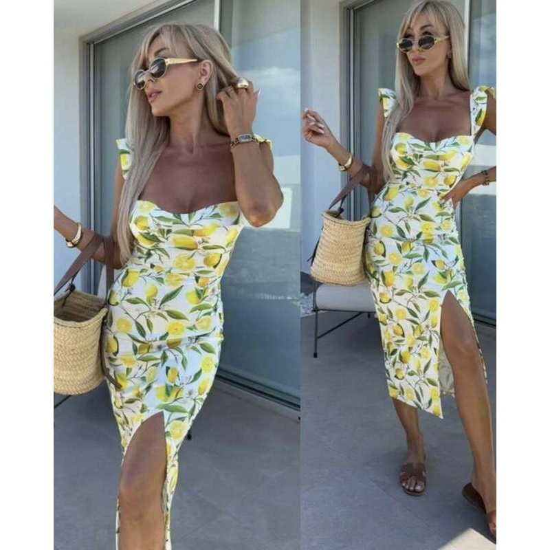 Модерна рокля щампа лимони без ръкав