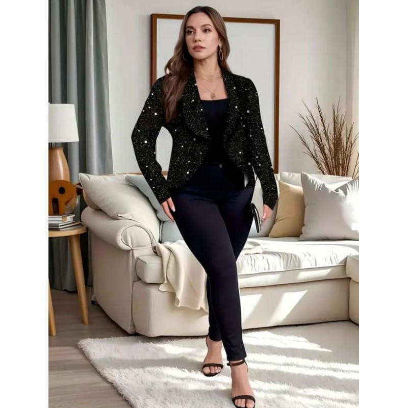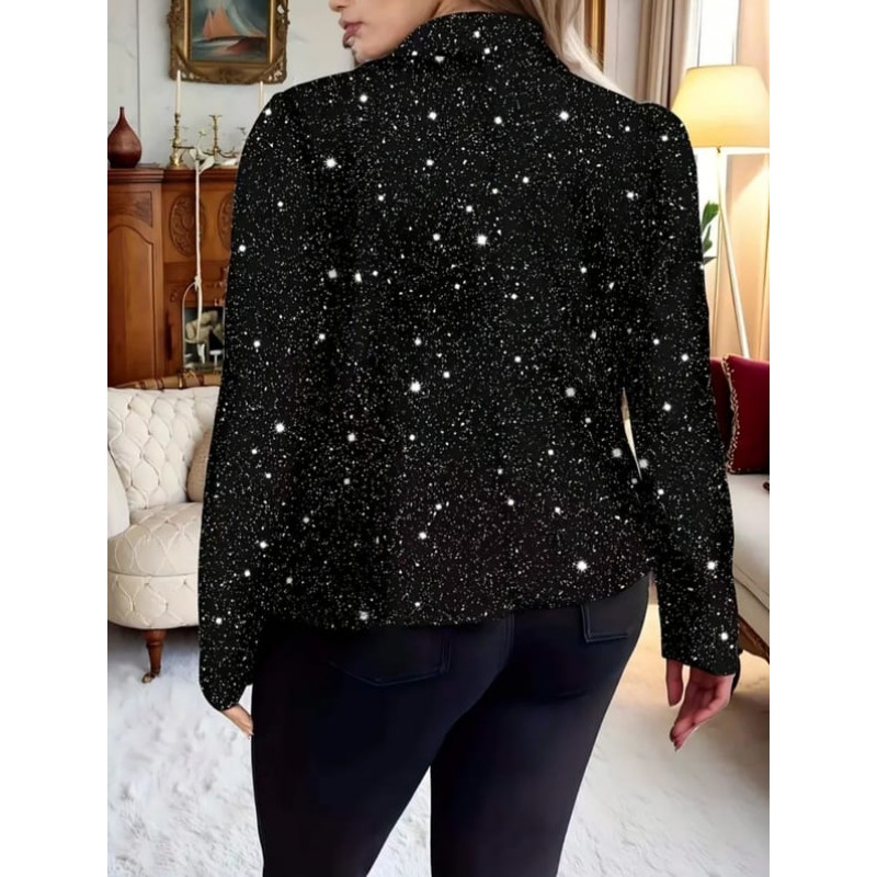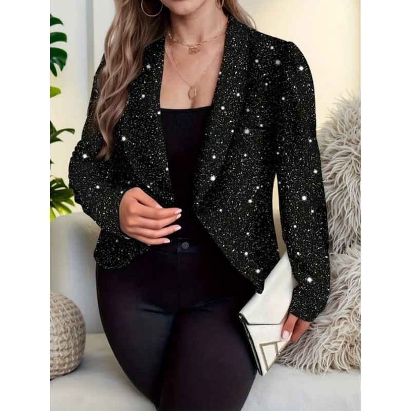 - дамско черно късо сако /жакет/ без копчета с сребриста щампа на точки