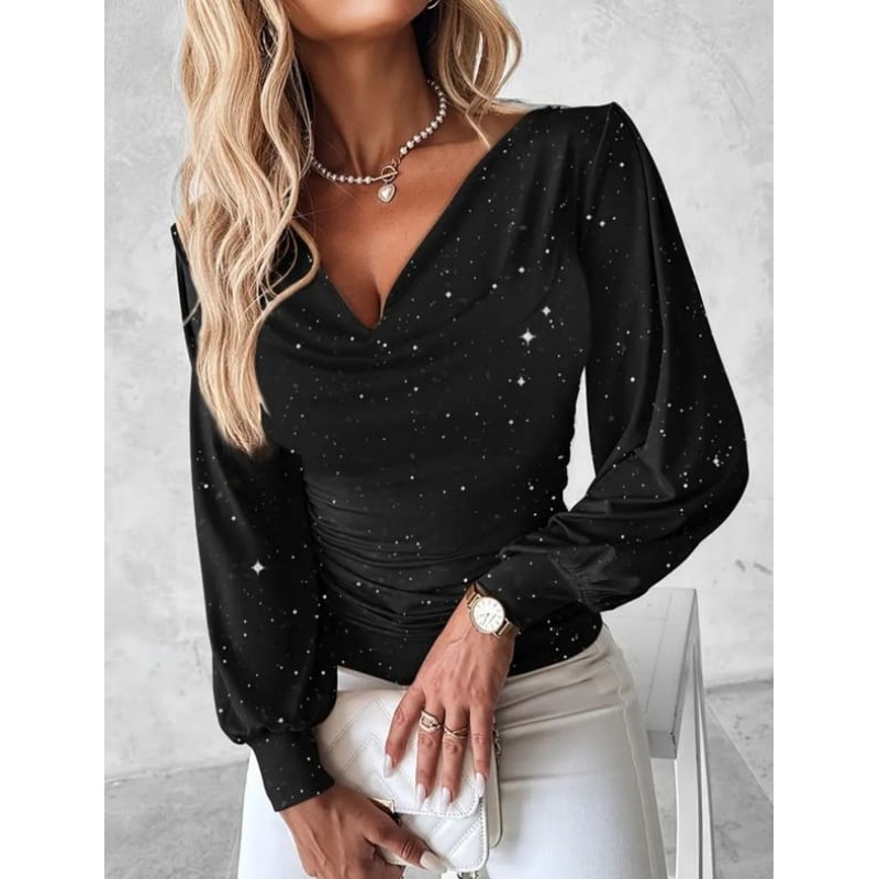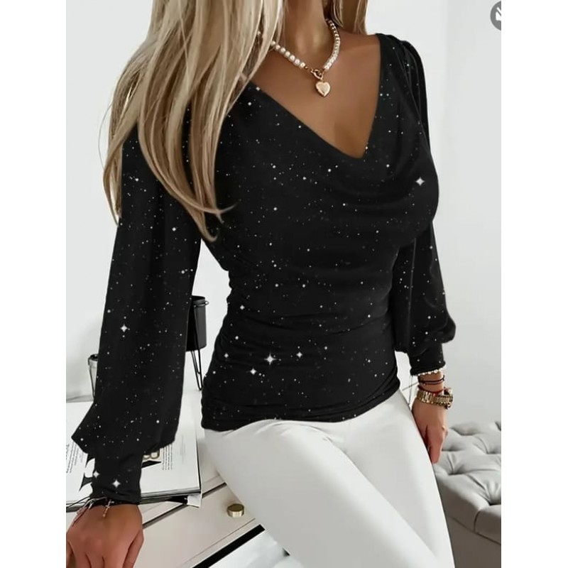- дамска официална блуза с дълъг ръкав и гръцко деколте