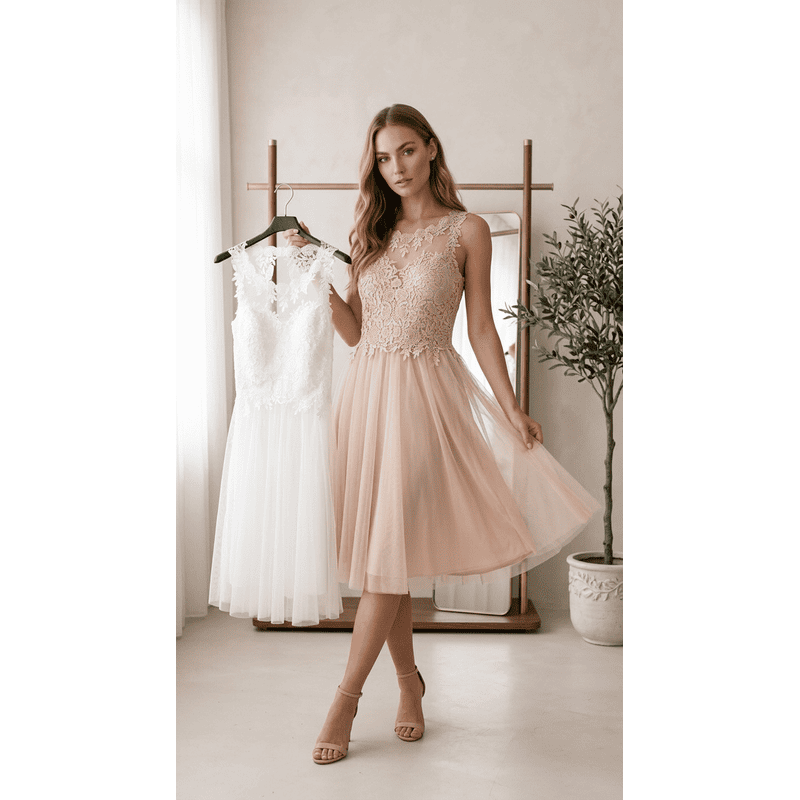 Розова официална къса рокля с брюкселска дантелаРазмер S за гръдна ок. 80-84 см, талия 68-72 см, дъл..