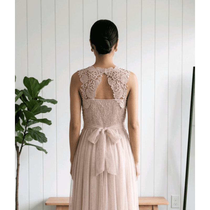 Официална розова рокля с мрежа и дантелаРазмер S/М за гръдна 84-88 см, талия 68-72 см, дължина 102 с..