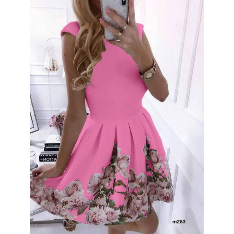 Дамска лятна рокля на цветя, разкроена с плохи.