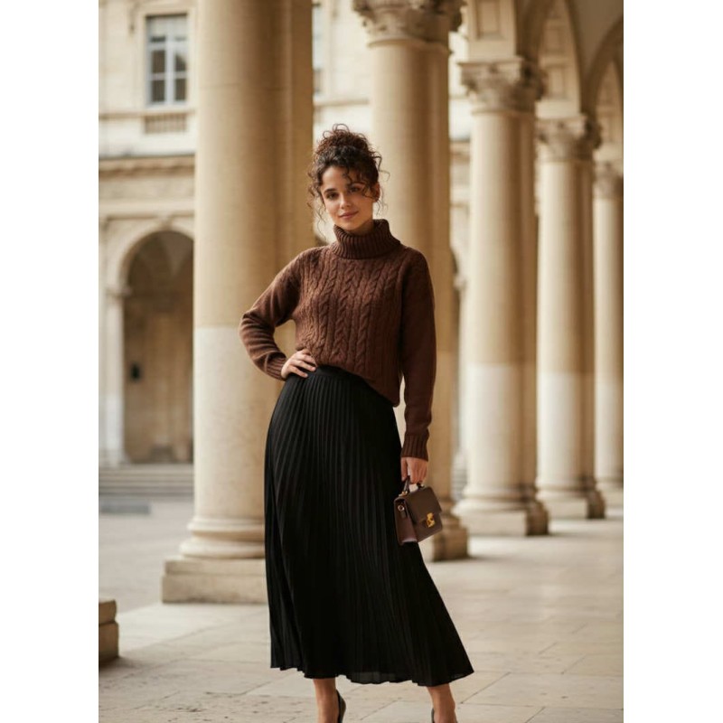 Плетена рокля поло под коляното отговаря на размер М/L за гръдна ок.94-100 см, ханш 92-96 см, дължин..
