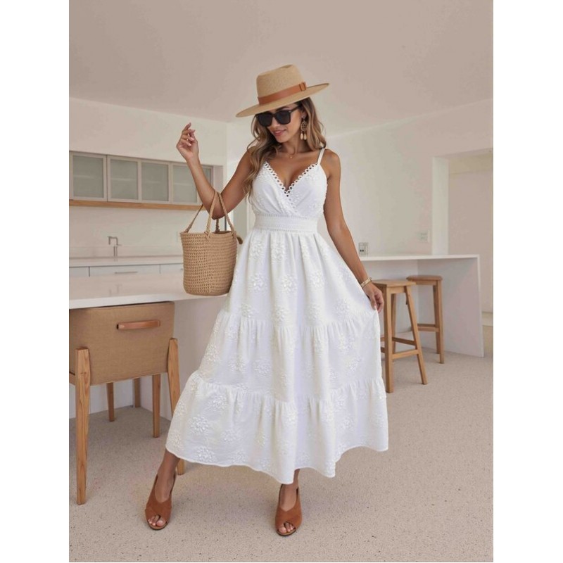 Етикети: дълга рокля, памучна рокля, бяла рокля, плажна рокля, рокля с презрамки