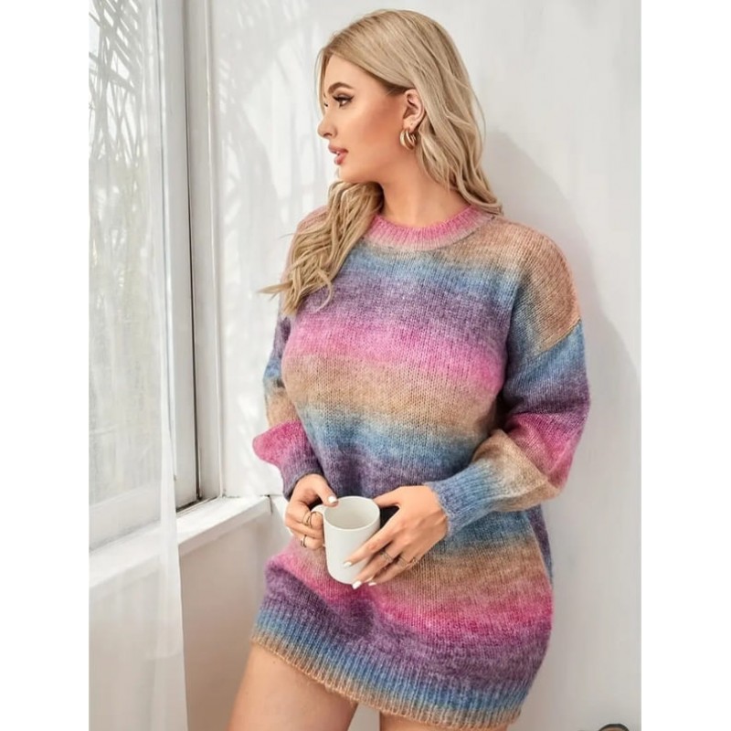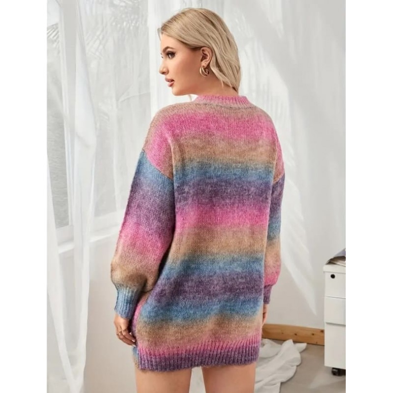 - дамски блузон с обло деколте и десен в цветовете на дъгата