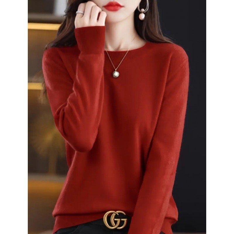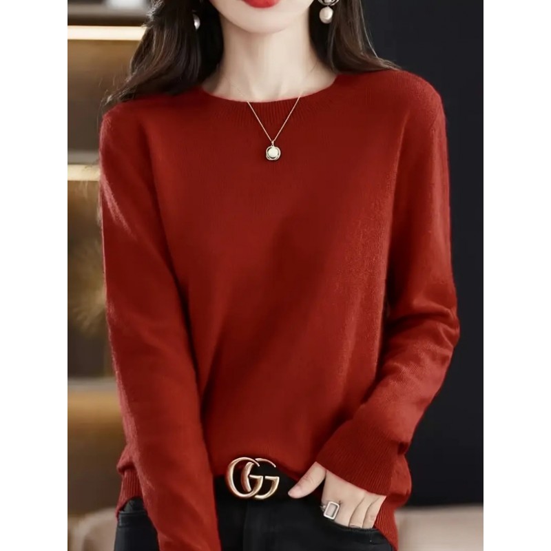 - дамска плетена блуза с обло деколте