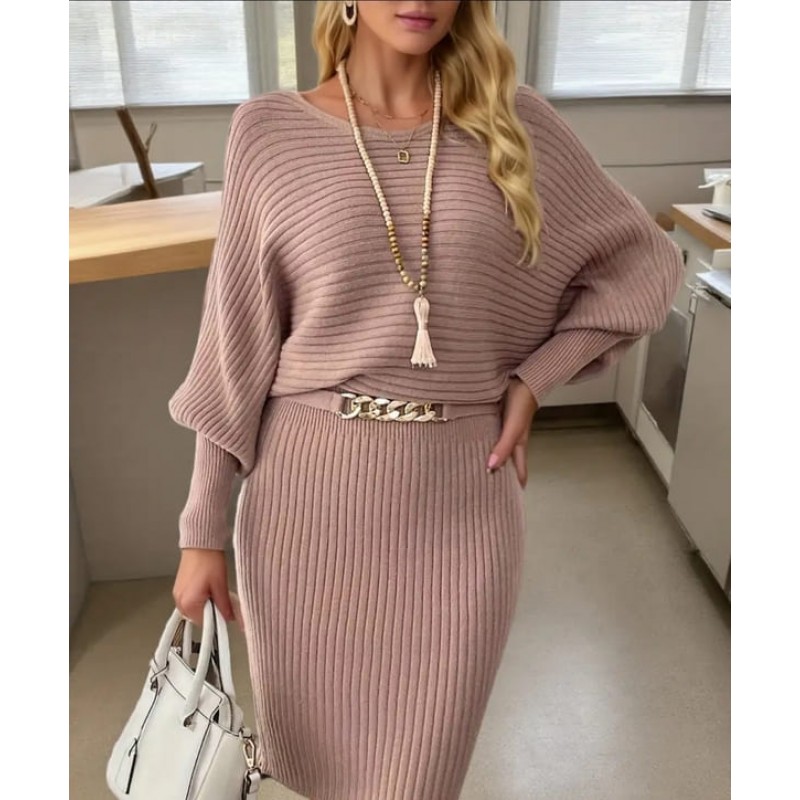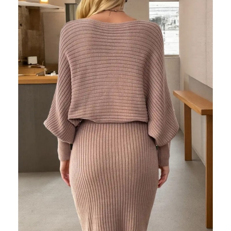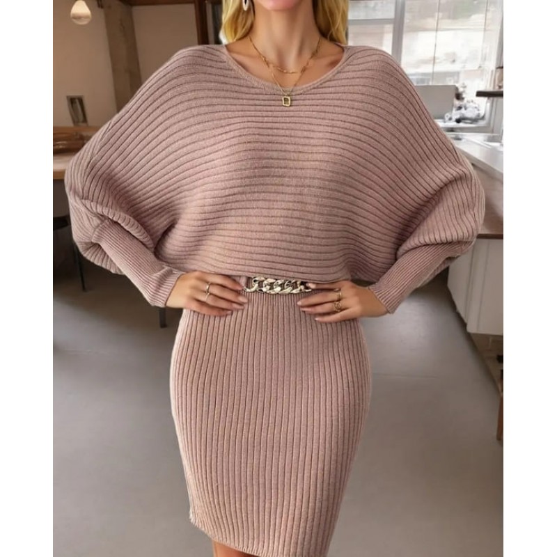 - зимна ежедневна рокля с миди дължина от мека прежда в цвят пепел от рози
