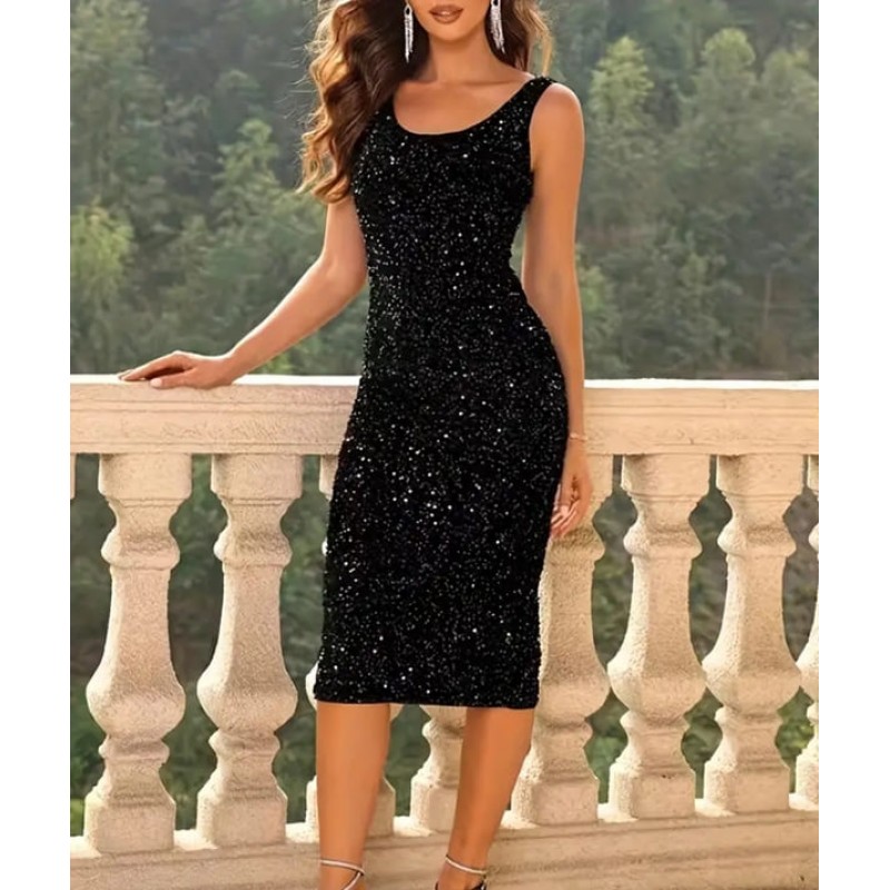 Етикети: дамска рокля, черна рокля, рокля до коляното, рокля с пайети, плюшена рокля, вечерна рокля, права рокля